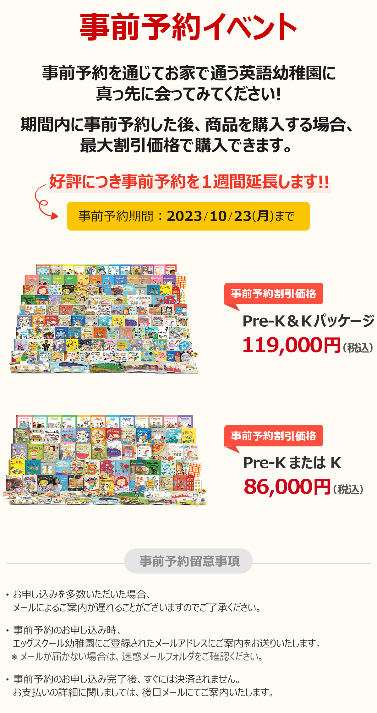• 事前予約イベント終了後の販売価格はPre-K+K(2年パッケージ)は[125,000円]、